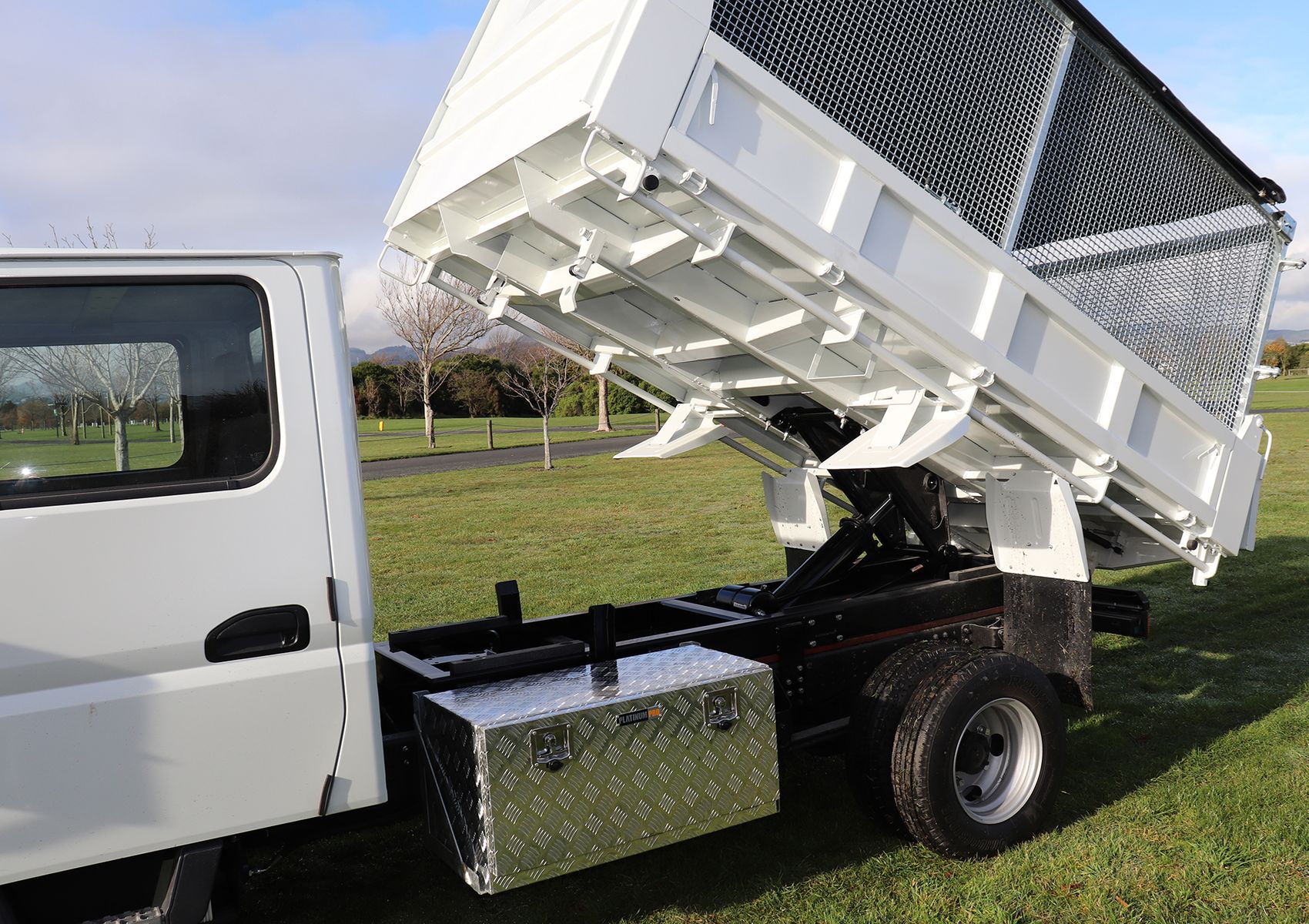 Designed for secure and efficient transport, this crew cab caged tipper features a full deck cage and swing-open rear gate for easy loading. With a retractable tarp system for added protection, it’s built to hand a wide range of jobs with confidence.