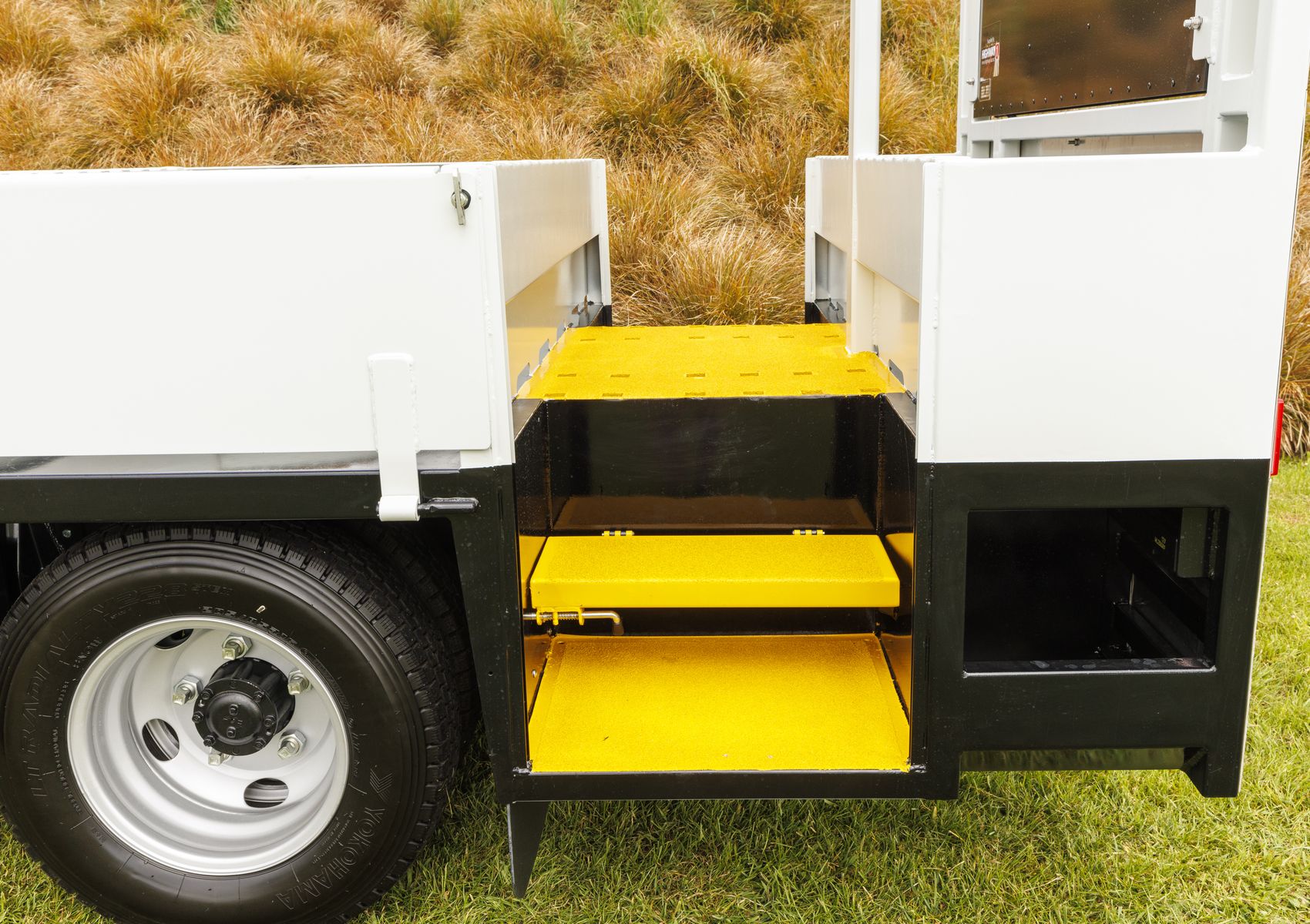 These Mitsubishi Fuso 616-based trucks are tailored for city works, with compact size and manoeuvrability and various safety equipment features and a range of signboard configurations. Download the variation spec sheet below to see all included features.