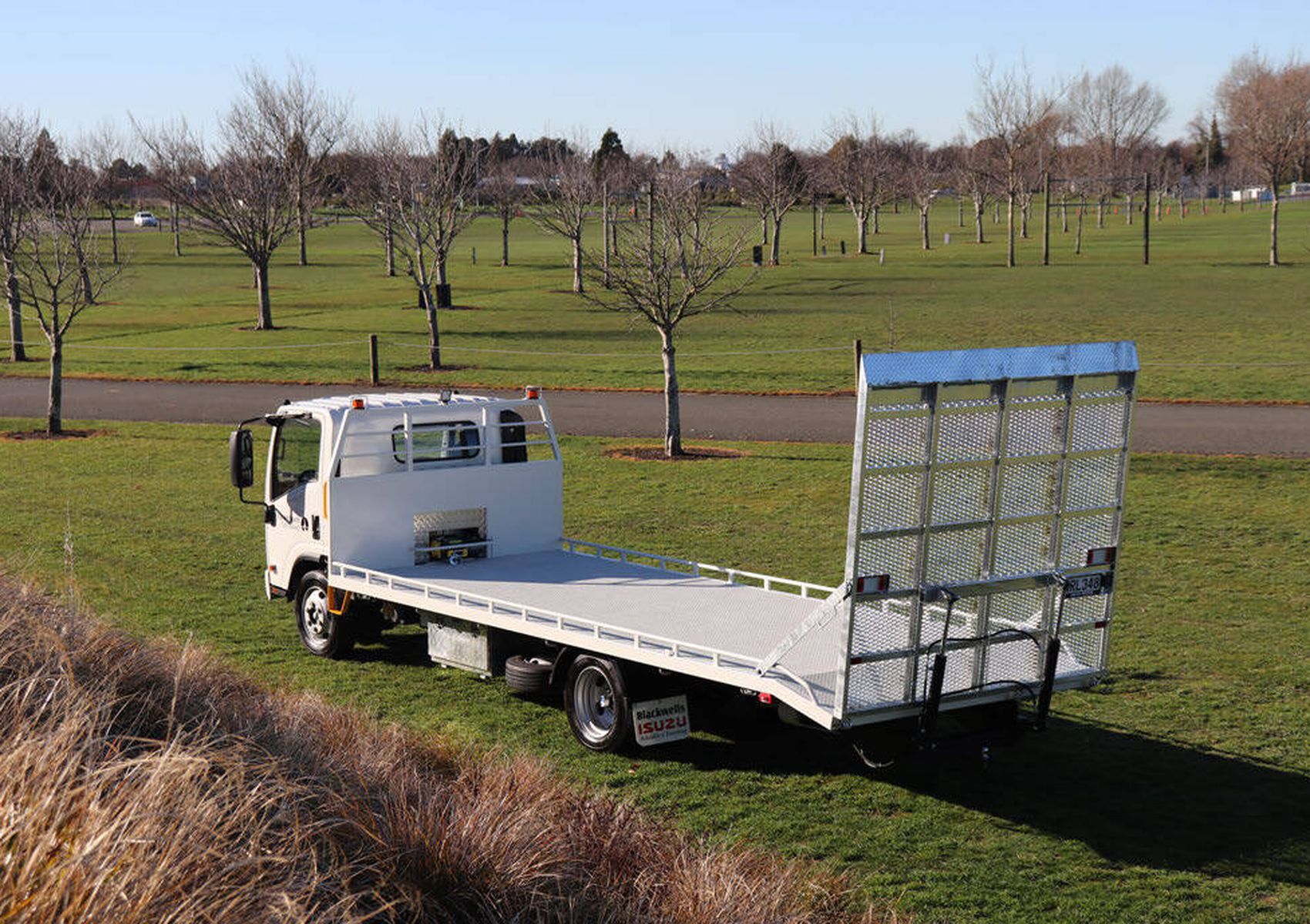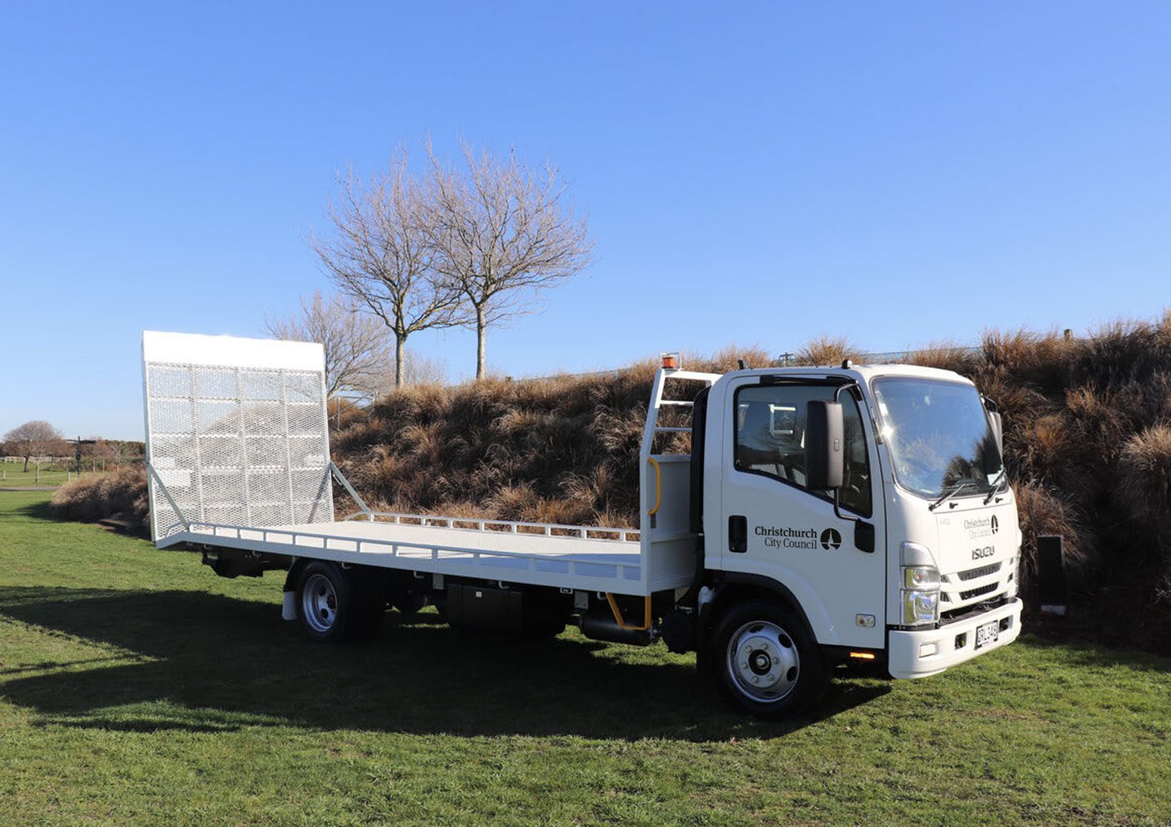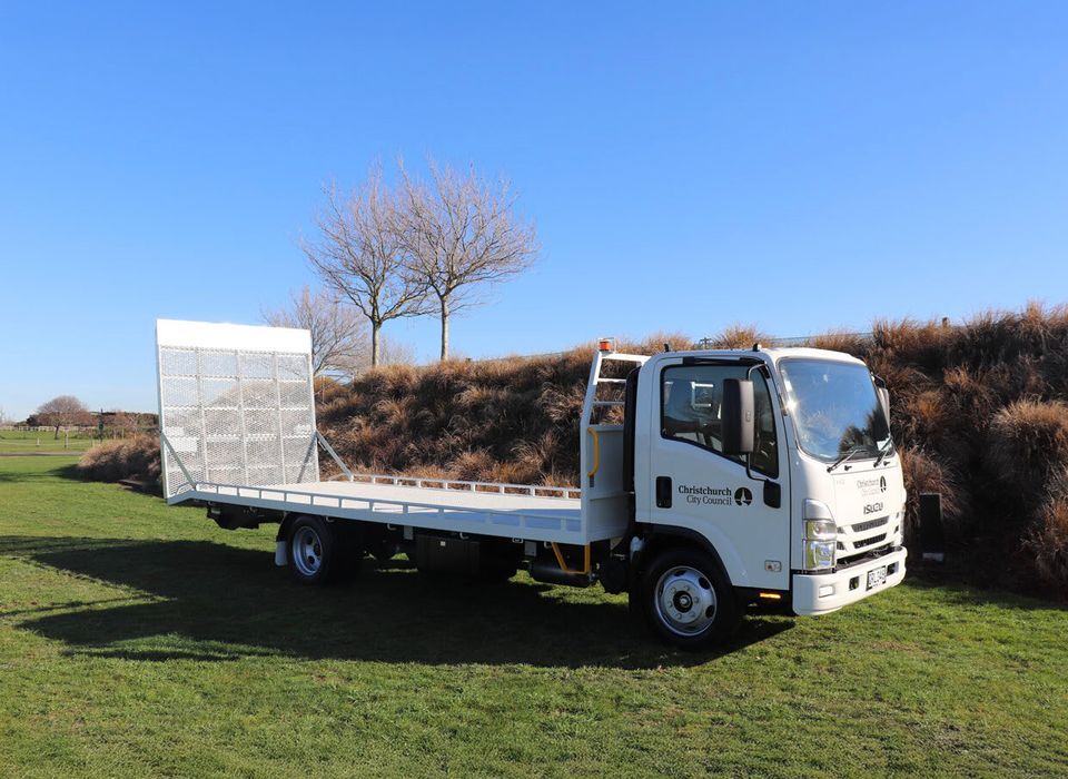 Purpose-built for versatility, this Isuzu transporter handles mowers, small vehicles, and plant equipment with ease. Its full-width ramps and under-deck toolbox make loading and storage simple, while flashing beacons ensure safety on the move.